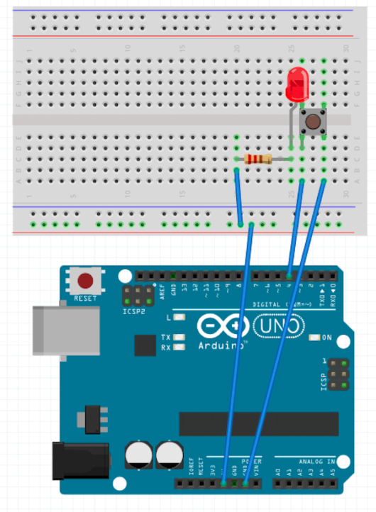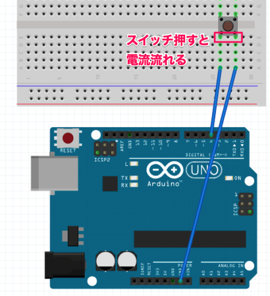 ただArdinoには、プルアップ抵抗が内蔵されているので、こちらを使用すれば、シンプルな回路で実装できます。