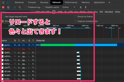Networkをクリックしたら、リロードしましょう。
