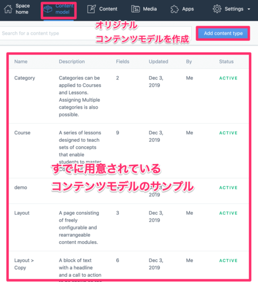 すでに用意されているコンテンツモデルのサンプルをクリックして見てみると、色々なテンプレートが確認できるのでオススメです!