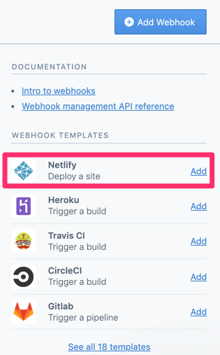 特定のコンテンツタイプ(例えば、ブログなど)に属するコンテンツに変更があった時のみ、Webhookが発火するので、全く関係ないコンテンツが変更されても無駄にNetlify側でビルドされる心配もありません!