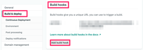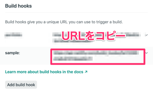 Settings > Build & deploy > Build hooksで「Add build hook」をクリック。