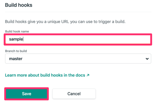 その後、Build hook nameを適当につけて、「Save」で保存しましょう。