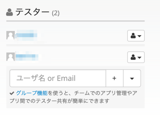 他の方にシェアする場合は、テスターにアカウントを追加しましょう!