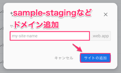 :stagingなどお好みで設定 :firebase hostingのサブドメイン