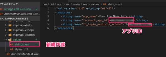 まずはyour project/android/app/src/main/res/values/strings.xmlを新しく作りましょう!