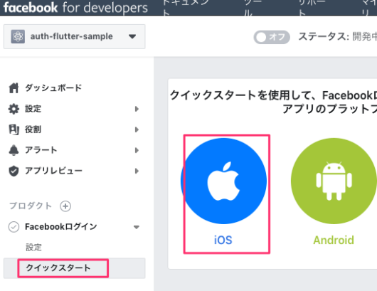 まずは「Facebookログイン」>「クイックスタート」>「iOS」をクリック!