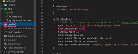 公式Readmeにyour android/gradle.propertiesへ以下2行を追記するよう書いてあるので、やっておきます。