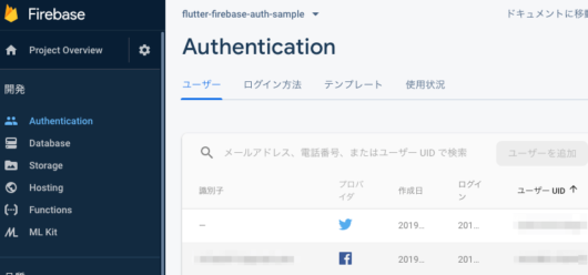 ログイン完了すると、Firebase側でユーザー登録されます!