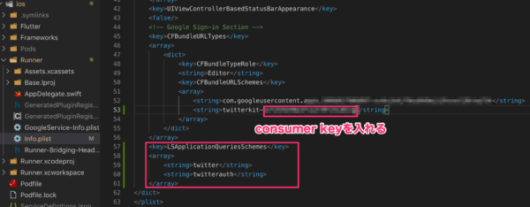 CONSUMERKEYはTwitter APIです。もしTwitter APIが123456789なら、twitterkit-123456789://となります!