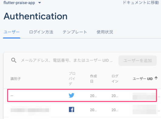 ログイン完了すると、Firebase側でユーザー登録されます!