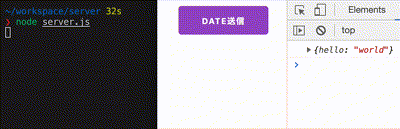 ブラウザのボタンを押すと、クライアントがサーバーへeventName"event"で日時を送信