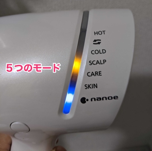 ナノケアのドライヤーには、5つのモードが搭載されています。