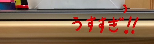 そして、ノートPCを周囲に音が響くほど強めにタイピングし続けると、PCが押し出されてちょっとずつ前に進んでいきます。とはいえ、普通にタイピングしていれば、動きません。また、キーボードを使うのであれば、PCが動く心配もないです。