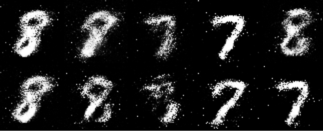 ノイズの状態から徐々に良い感じの7, 8画像が生まれていますね。