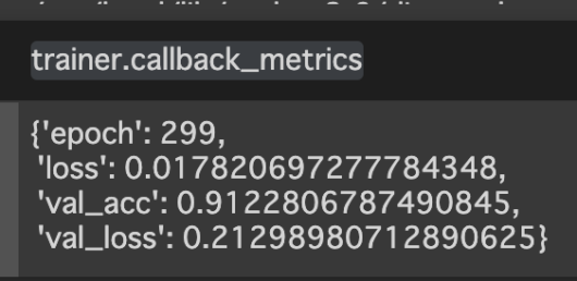 results =  {'val_loss': avg_loss, 'val_acc': avg_acc}