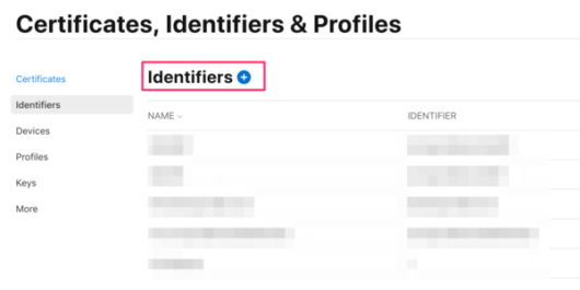 Apple Developer ProgramでIdentifiersを登録します。IdentifiersはBundle Idです。