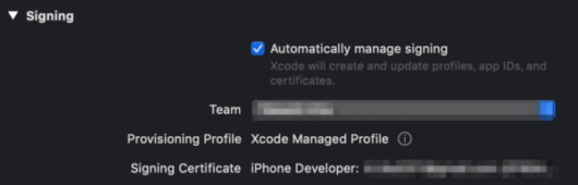 次にSigningの設定です。Provisioning ProfileやCertificate(証明書)の作成に該当します。