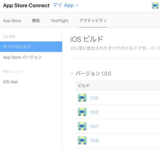 審査に再アップロードするときは、Buildバージョンを毎回変える必要があるのでご注意ください!