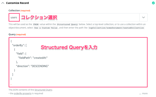 Field”createdAt”の降順で、最初に出てくるデータが以降のワークフローで使われます!